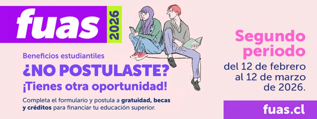 Si no completaste tu postulación a beneficios estudiantiles en el FUAS-1, a partir del 12 de febrero se iniciará el segundo y último período de postulación a beneficios estudiantiles para la educación superior 2026, a través del Formulario Único de Acreditación Socioeconómica (FUAS), que se encontrará disponible ingresando a fuas.cl. El proceso estará habilitado hasta el 20 de marzo e invita a personas que ingresarán a primer año de la educación superior en 2026, así como a quienes ya se encuentran cursando una carrera, a postular a los instrumentos de financiamiento estudiantil que ofrece el Estado. Entre ellos se encuentran la gratuidad, becas de arancel y créditos para la educación superior.